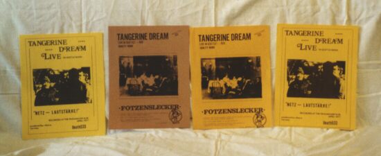 | Like most successful rock acts, Tangerine Dream has been given the dubious honour of being bootlegged. This means, that unauthorized recordings of the band's performances are being sold on illegally manufactured records. Many of these "bootlegs" have become collector's items over the years. Fans appreciate their availability, giving them access to otherwise unreleased music material by their favourite band. |