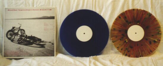 | TD's only concert in Germany in 1986 took place in the concert hall of Cologne's radio station WDR, the 300 tickets were given out for free to the listeners of WDR, but die-hard fans from all over Europe found ways to get tickets and met up there. The first hour of TD's 100-minute performance was broadcasted live and gratefully received by German bootleggers who made Relativity from it. It is a limited edition of 100 numbered LPs, 80 of which come on black vinyl with a neutral cover and a green insert sheet with fantasy track titles. 10 copies on multicoloured vinyl have a neutral cover with a brown insert, another 10 have a full-size photo cover, photo labels and the insert printed on a transparent sheet. Both multicoloured series are numbered from one to ten! |