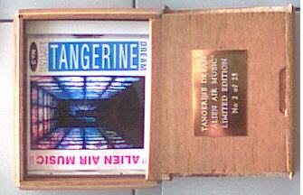 | The Alien Air Music CDR brings us 57 minutes of live music from various US concerts in 1986, 1988 and 1989. It comes in a wooden box with a numbered brass plate on it. Quality is great, too, and only 25 copies were made. Fractal Realities In A Shattered Plane is a one-off CD-R made as a new year's gimmick with a similar wooden box and brass plate. The music is from TD's Melbourne 1982 concert. |